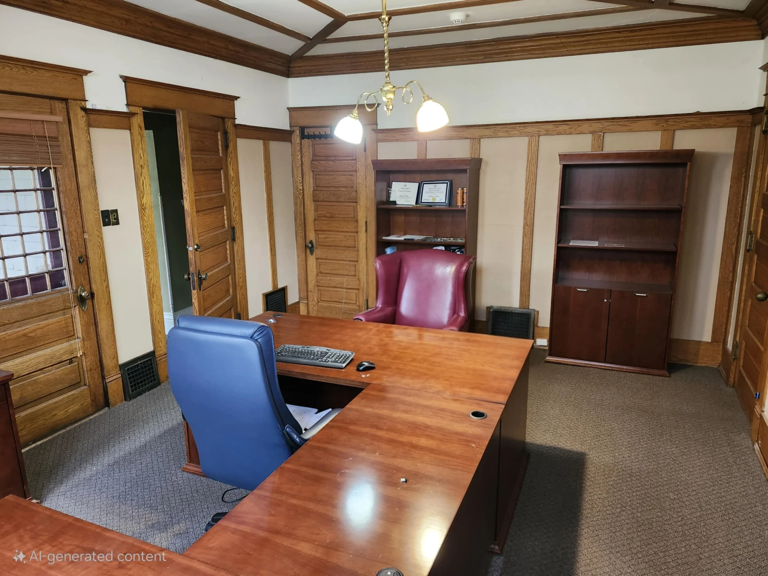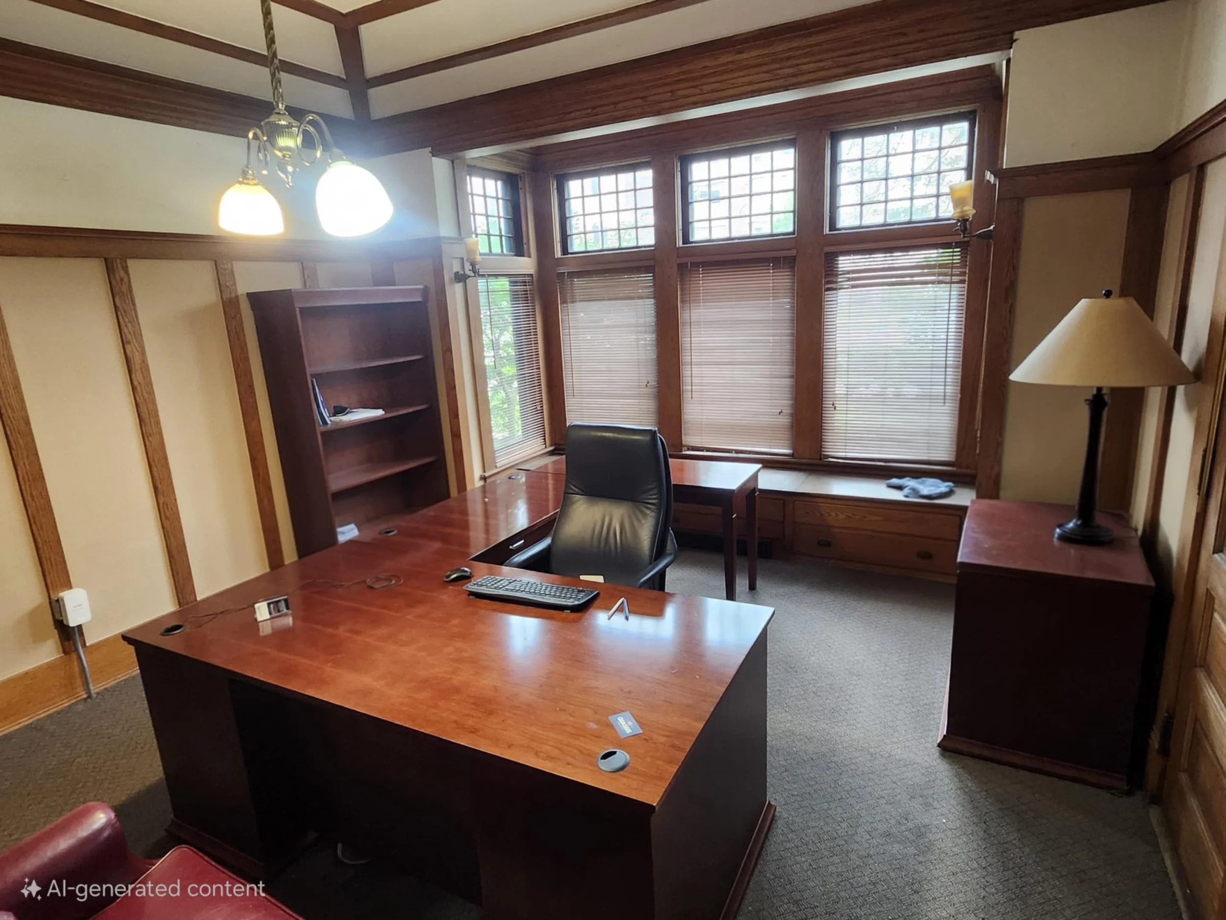 Cozy lower level office in quieter part of Jake’s.